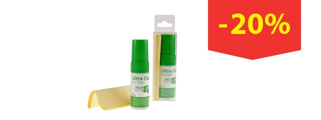 Czyste i przejrzyste szkła okularowe – dla wizerunku godnego zaufania! W tym miesiącu nabędź środek czyszczący Ultra Clear Anti Reflex Set (25 ml) z 20 % zniżką. To wszystko, czego potrzeba do skutecznego czyszczenia okularów z powłoką antyrefleksyjną.
